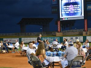 In addition to standard meal service, the Blue Wahoos now offer Diamond Dinners — an upscale spin on the meal kits it served earlier in the pandemic — and have hosted specialty nights. One such event, Taps on the Diamond Dinner, was a collaboration with regional brewery Oyster City Brewing Co. where the beer producer came up with special beverage pairings to go with a multicourse meal that included oysters, ceviche, sushi, pretzel flatbread, spicy Thai chicken and peach cobbler, all served to patrons seated on the infield dirt.